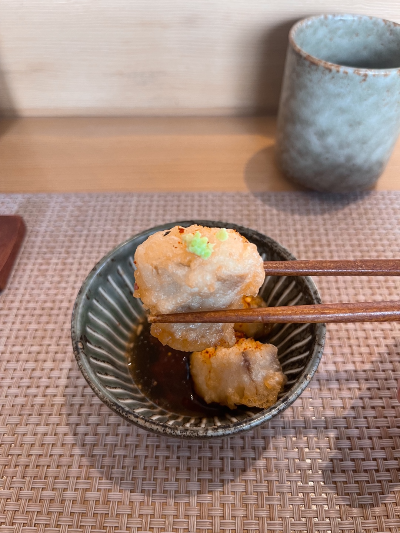 그리고 두 번째로 나온 음식은 살치살을 튀겨서 간장과 와사비를 올려먹는 에피타이저(?) 였습니다. 초밥이나 밥이 들어가지 않아서 에피타이저처럼 느껴졌어요. 하지만 맛은 메인요리만큼 맛있습니다. 역시 살치는 어떻게 먹어도 맛있는 생선이죠. 특히 간장이 너무 맛있습니다. 집에 손님 오시면 저렇게 요리를 해서 내놓으면 참 좋겠다 싶은 음식이에요.