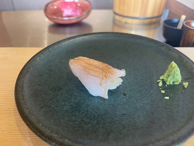 장국에 이어 실파를 넣고 참돔을 올린 초밥입니다. 안에서 파의 향이 살짝 느껴지면서 새콤 짭쪼롬한 밥이 아주 맛있습니다. 초밥 만들 때 밥에 하는 양념을 초대리라고 하던가요? 초밥 오마카세는 두 번째이지만, 스시우미의 밥맛은 특별합니다. 방문하셔서 꼭 맛을 보셨으면 좋겠습니다.