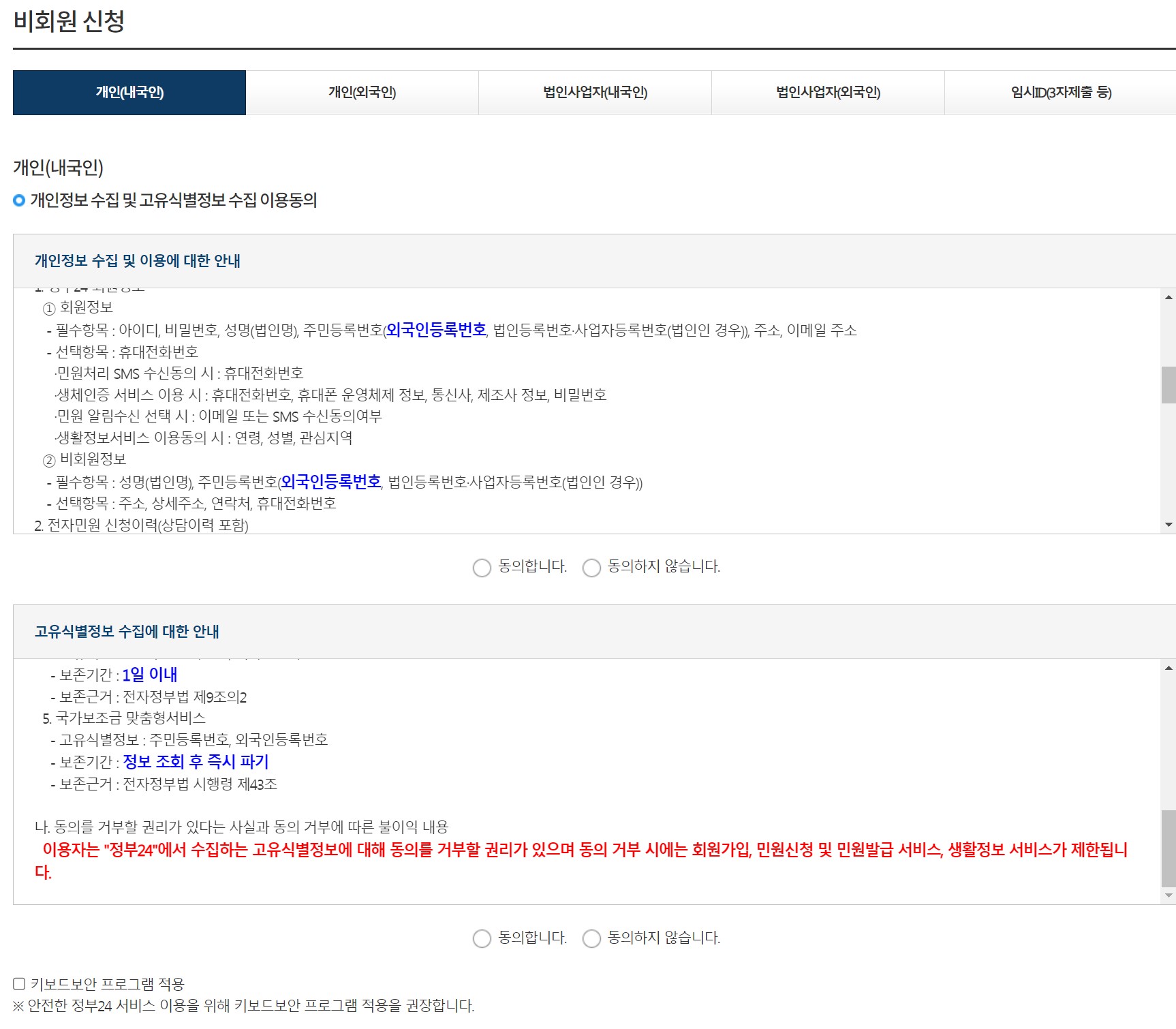 국내 거주자는 정부24(gov.kr)에서 신청 가능