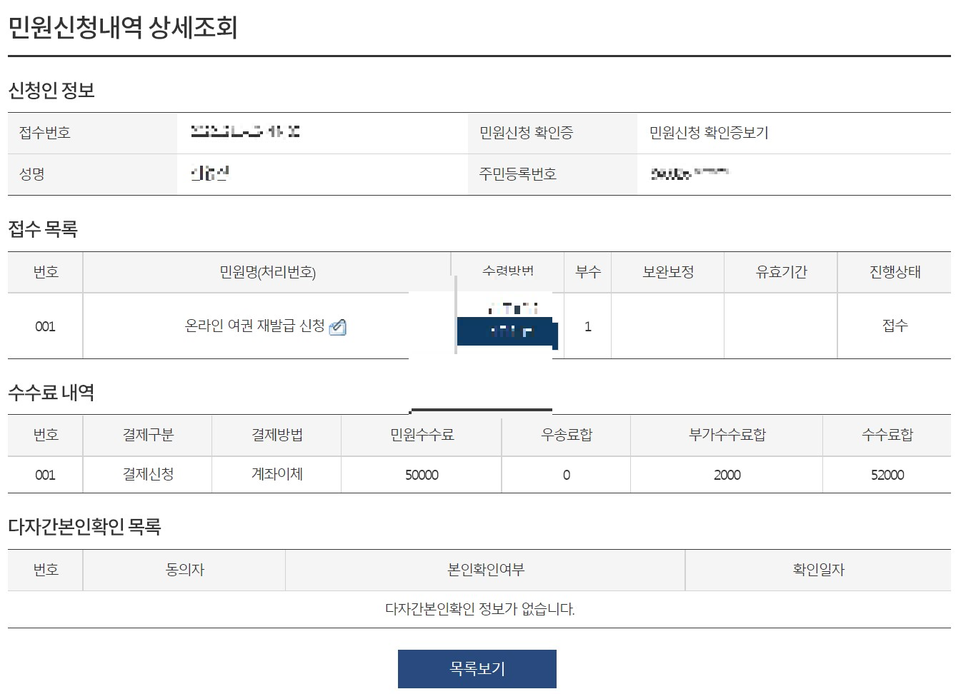 6. 여권 발급하신 후 결재창이 뜨면 결재까지 완료를 해줍니다. 그리고 My GOV에 들어가보시면 이렇게 온라인 여권 재발급 신청이 되어 있는 것을 볼 수 있습니다.
