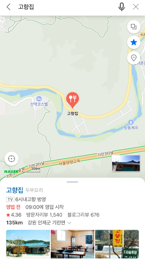 그리고 지도에서 찾아보니 강원도 인제까지 거리는 135 km입니다. 시속 135km로 달리면 1시간만에 갈 수 있는 거리니,, 가깝네요!
