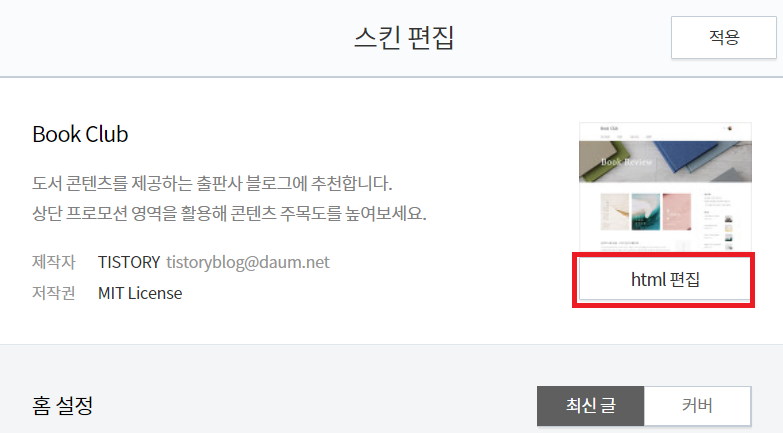 스킨편집에 들어가셨으면 바로 html편집까지 우리는 말안해도 들어갈 정도는 되시죠?ㅎㅎ