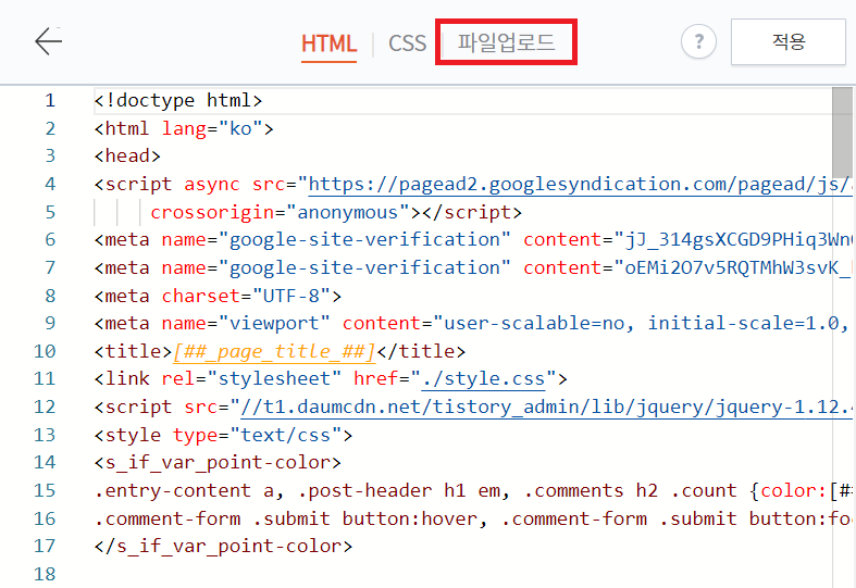 티스토리는 html편집에 들어가야 뭐든 편집하고, 문제도 해결할 수 있기 때문에 조금만 관심을 가져주셨다면 스킨편집으로 들어갈 때부터 이정도는 예상하셨을거에요.