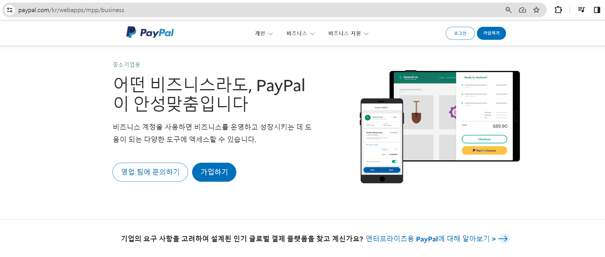 1. 페이팔 웹사이트에 접속 후 계정을 만들기 위해 [가입하기]를 눌러줍니다.