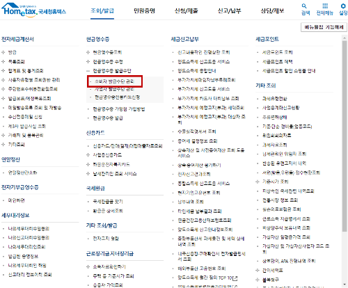 2) 현금영수증에 보시면 현금영수증 발급수단이라는 메뉴가 보이실 겁니다. 이걸 눌러주시면?