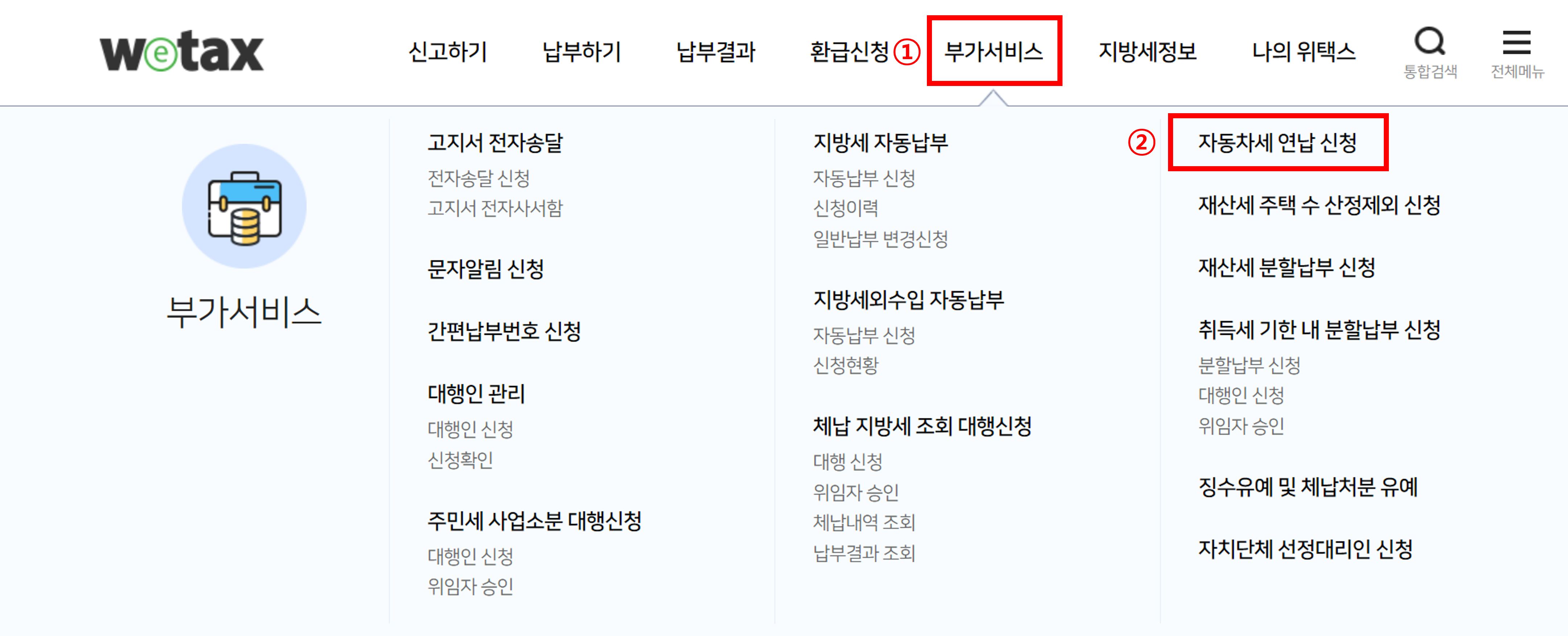 4. 그리고 [자동차세 연납 신청]을 선택하여 신청해 줍니다.