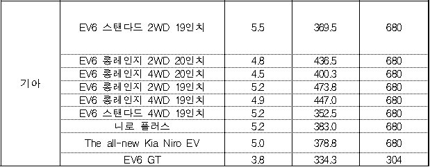 참고로 세 번째 칸은 전비, 네 번째 칸은 주행거리, 마지막 칸이 보조금입니다.