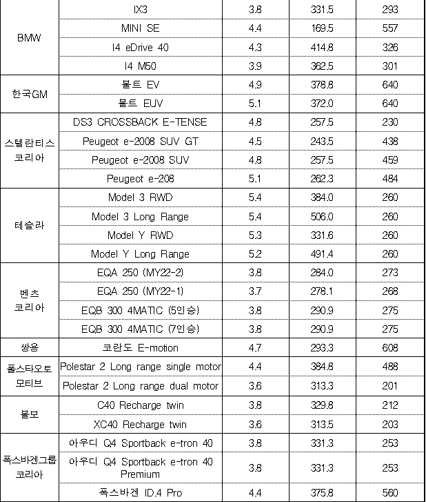 참고로 세 번째 칸은 전비, 네 번째 칸은 주행거리, 마지막 칸이 보조금입니다.