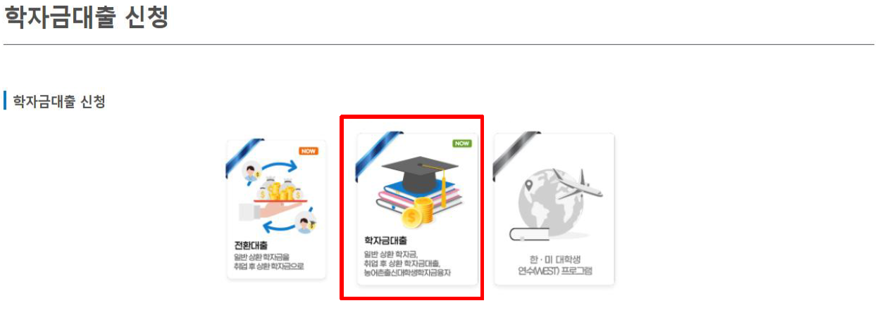 3) 신청 페이지에서 학자금 대출을 선택