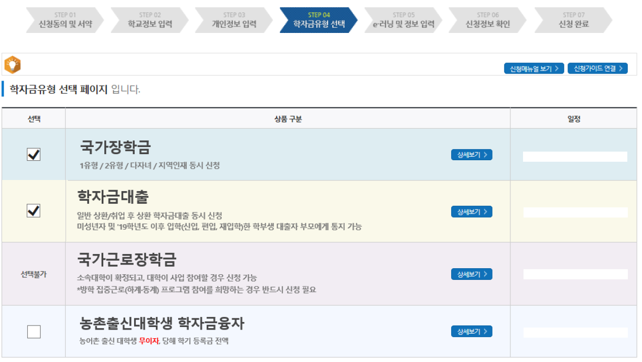 3) 신청 페이지에서 학자금 대출을 선택