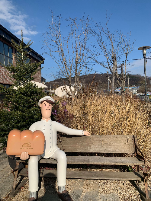 입구 앞에 저 빵집 마스코트가 반겨준다. 사실 저 캐릭터 옆에 앉아서 빵들고 사진찍고 싶었는데